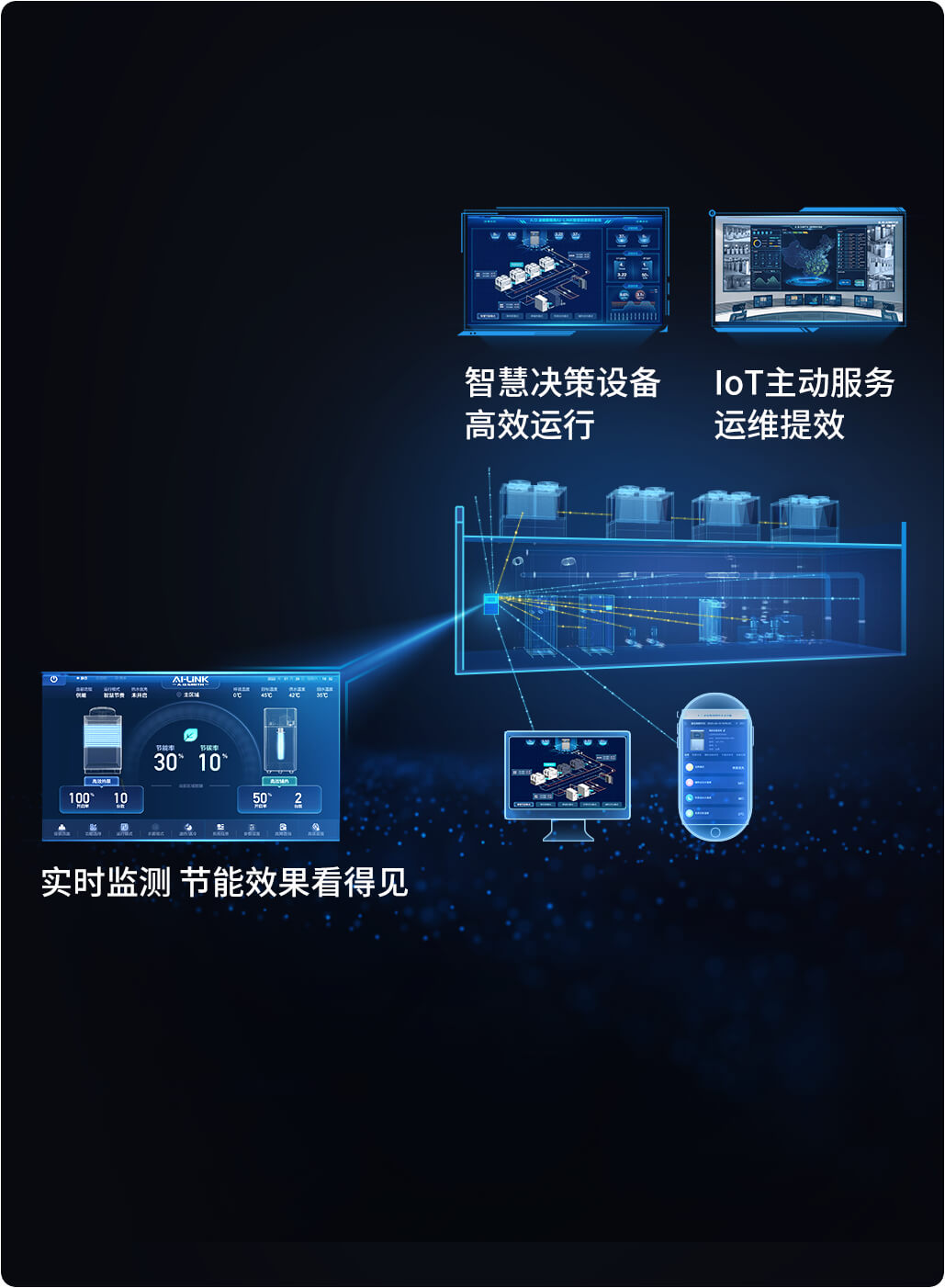 AI-LiNK搭载工业级高速数据通讯技术,让多种设备底层数据深度融合,通过智慧算法实现能源高效利用